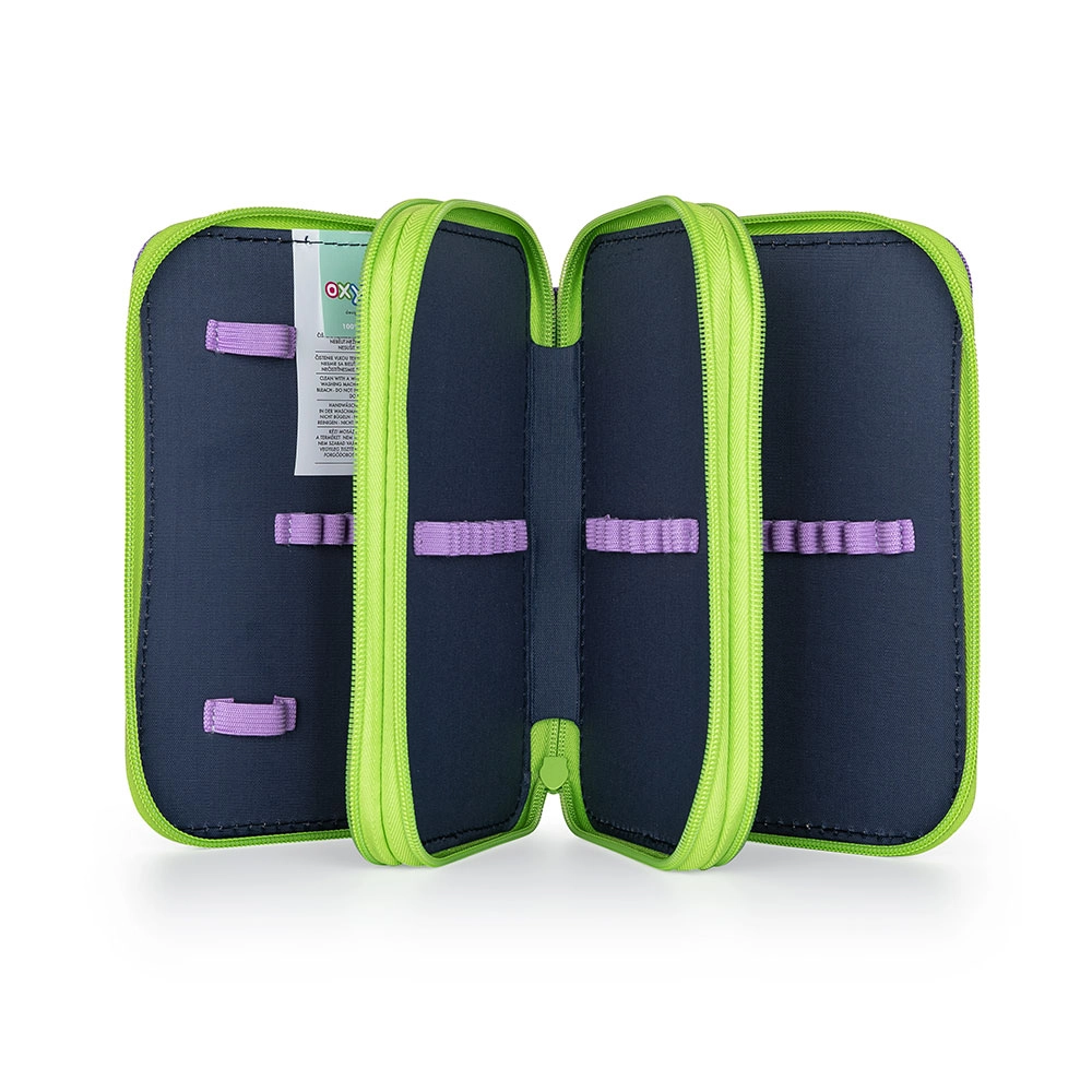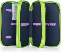 Несесерът е оборудван с 40 ластични държача за моливи, химикалки, пастели и дребни ученически принадлежности. Благодарение на здравия цип с големи дърпачи се отваря и затваря лесно, а прозрачният джоб за седмичното разписание улеснява организацията на учебната седмица.