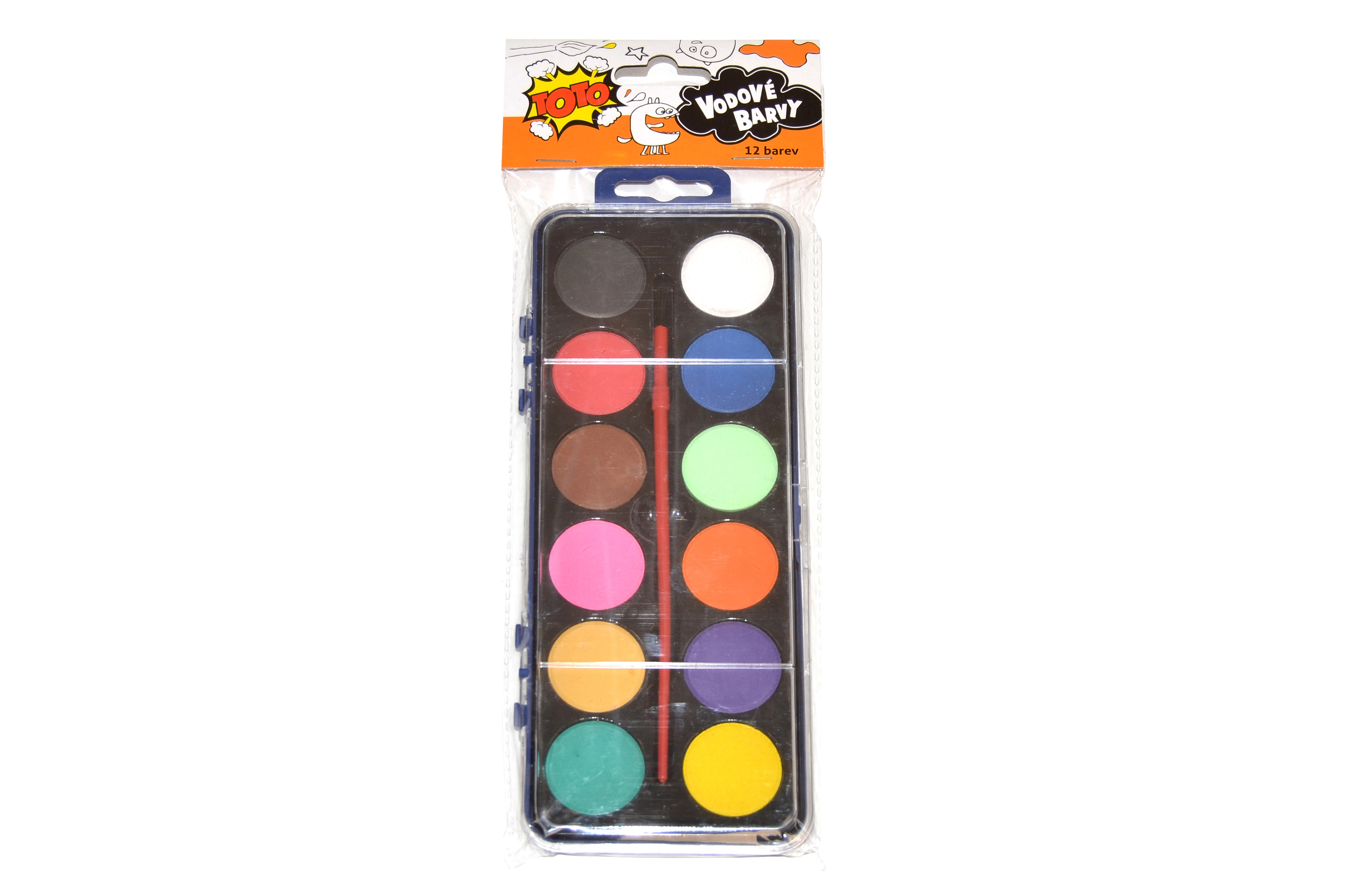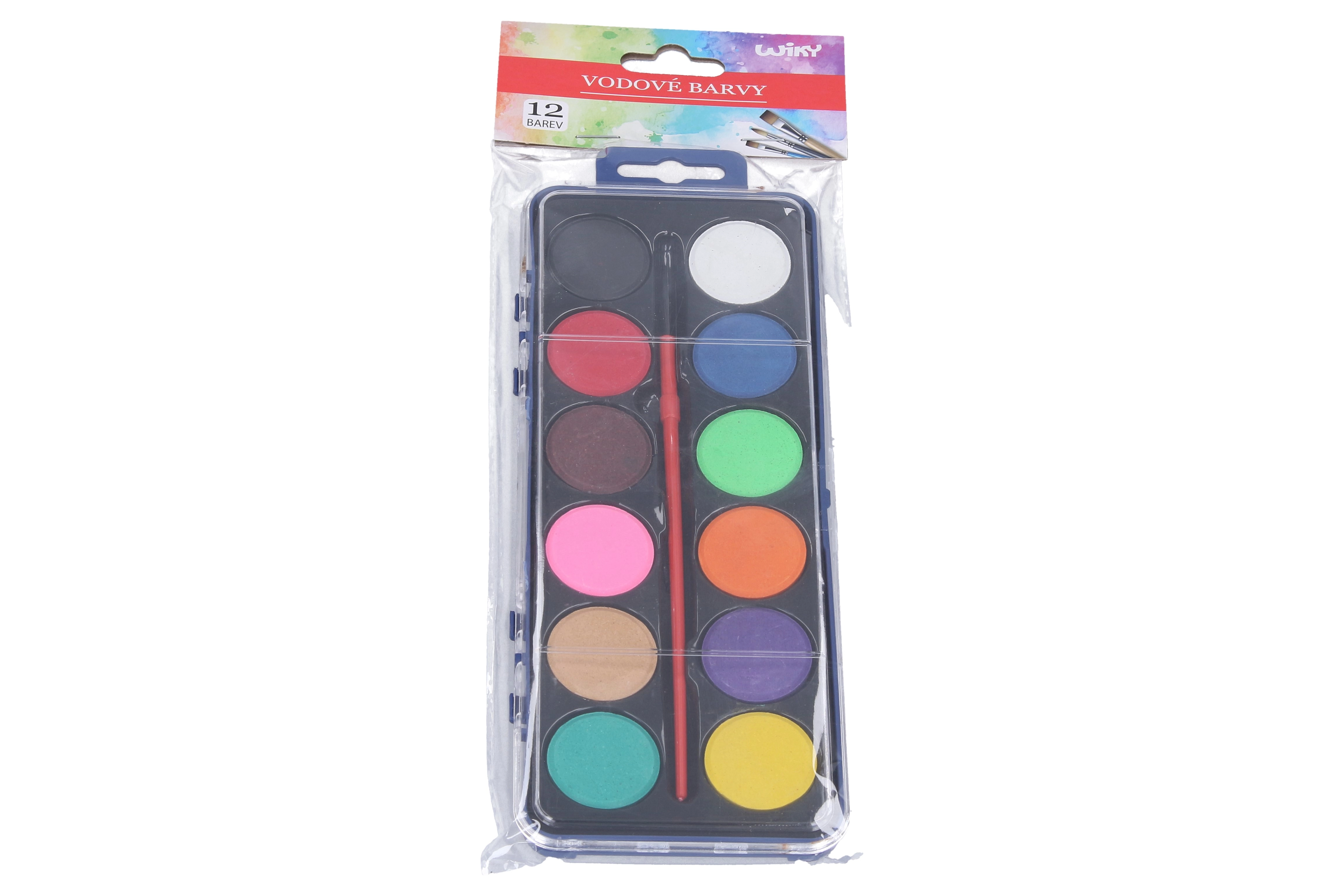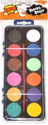 Компактен комплект акварелни бои за деца и креативни възрастни, съдържащ 12 наситени нюанса и практична четка. Идеален за училище, хоби и първи опити в рисуването – лесно се смесват, съхнат бързо и осигуряват гладко покритие върху хартия.
