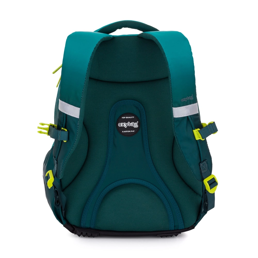 Ученическата раница OXYBAG OXY NEXT е идеален избор за деца с ръст от 128 см. Ергономично оформеният и подплатен гръб заедно с регулируемите раменни презрамки и гръдния колан осигуряват здравословно и удобно носене през целия ден. Модерният тюркоазен дизайн с неоновожълти детайли впечатлява от пръв поглед.