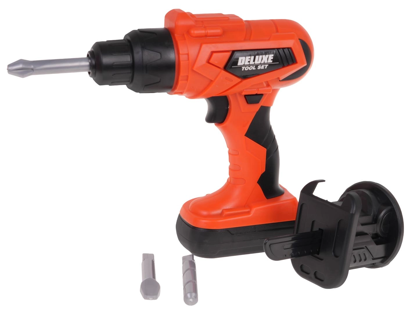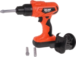 Детската бормашина/отвертка с 2× AA може да завинтва и развинтва. Включени са 3 сменяеми бита и накрайник с трион за още повече забавление.