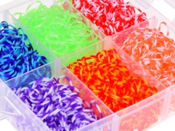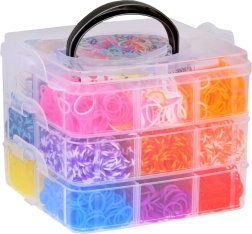 Този цялостен комплект LOOM BAND предоставя всичко необходимо за изработка на цветни бижута и аксесоари. Ластиците в 15 красиви нюанса са подредени в прозрачен органайзер, така че да не се смесват и работата винаги да е удобна и прегледна. Благодарение на кукичките, прашките и двата стана лесно ще създавате както прости, така и по-сложни модели.