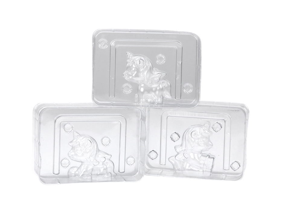Прозрачните пластмасови форми с детайлен мотив на еднорог осигуряват красиви отливки и лесна многократна употреба.