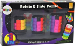 Запознайте се с комплекта от три логически пъзела във формата на цилиндър, които ще осигурят часове забавление и умствени предизвикателства. Подреждането на цветовете в един ред чрез завъртане на пръстените и преместване на цветните кубчета ще донесе своята доза радост.