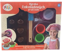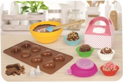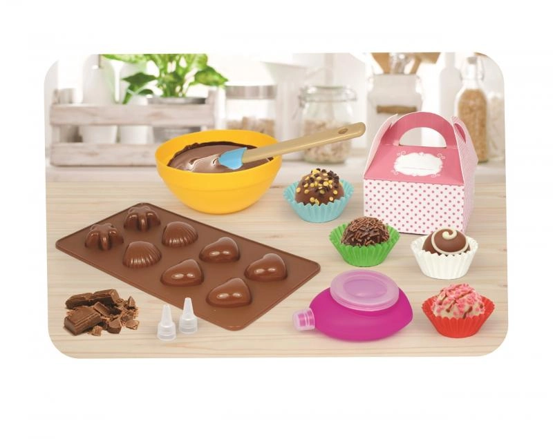 Включва купички, шпатула и формички, от които децата се нуждаят за приготвяне на шоколадови лакомства.