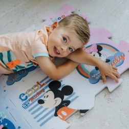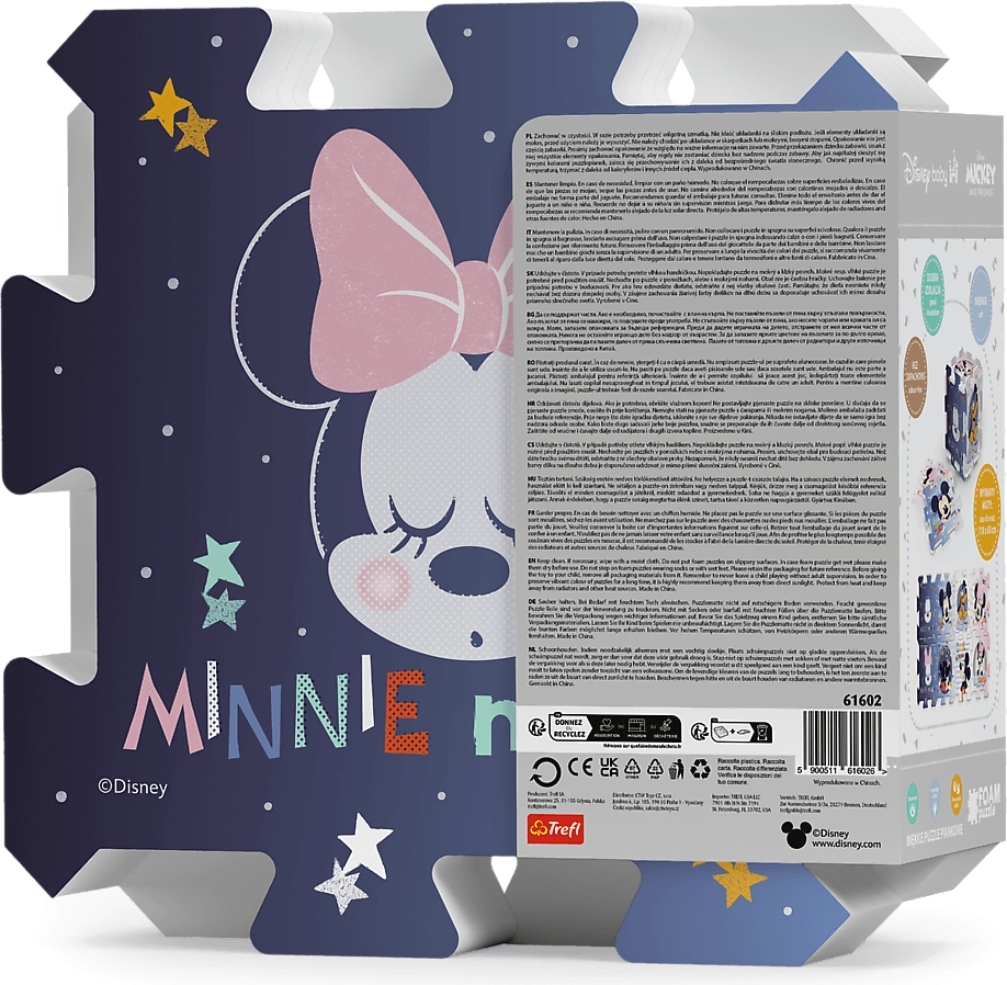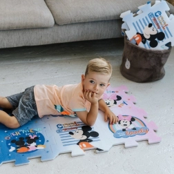 Потопете се в света на играта с пеновия пъзел, който представя картинки на любимия Мики и неговите приятели. Пъзелът е изработен от специален материал, който не е типичната набраздена EVA пяна, а наподобява дебел туристически шалт или многослоен мирелон.