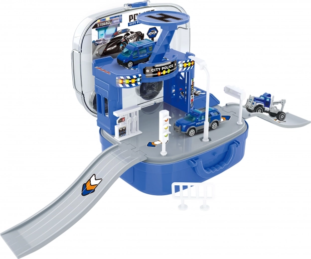 Полицейската станция в куфарче носи вълнуващо забавление за малките полицаи и полицайки. Впуснете се в спасителни мисии с размер на колите 6 см и се насладете на часове екшън. Част от комплекта е и ръчен асансьор, който улеснява придвижването между етажите.