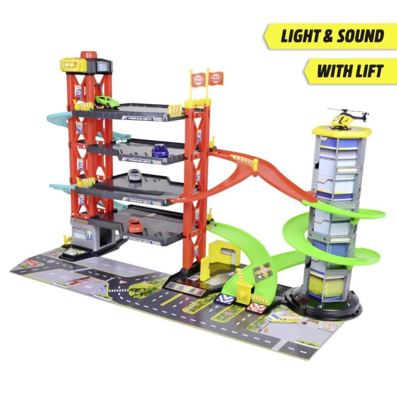 Многоетажният паркинг гараж е идеалната играчка за всеки малък автомобилен ентусиаст. Четирите нива дават на децата много пространство за креативна и интерактивна игра. Благодарение на ефектите със звук и светлина всяка игра се превръща във вълнуващо преживяване.