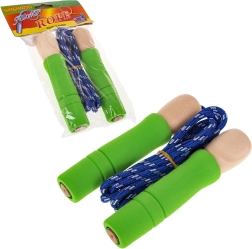 Детско въже за скачане с дървени дръжки и противоплъзгащи гумени накрайници е идеално за деца от 5 години. Осигурява чудесна възможност за активно прекарване на време на чист въздух.
