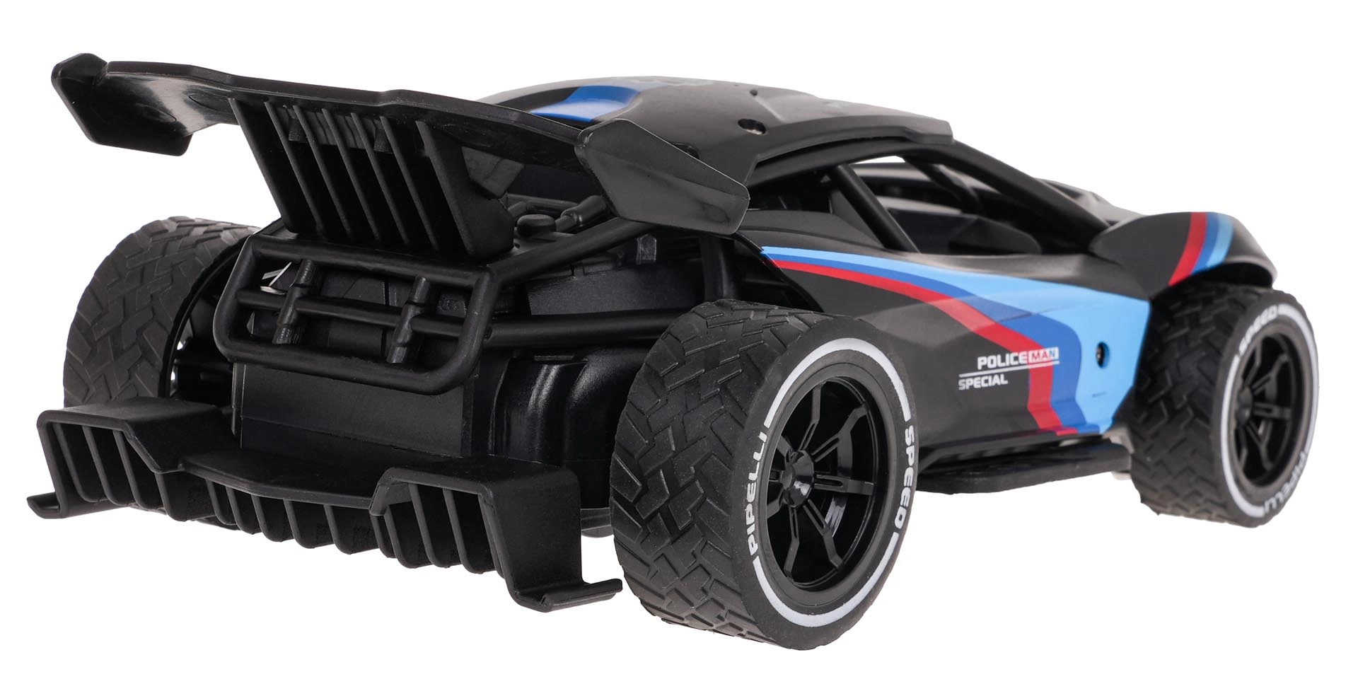 Моделът се движи напред и назад, надясно и наляво, прави ефектни 360° завъртания и плавен дрифт. Мощният старт дава енергично ускорение. Захранването е с презареждаем акумулатор 3,7 V 500 mAh, включен в комплекта.