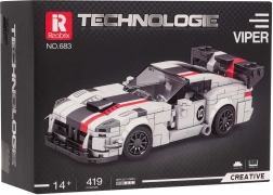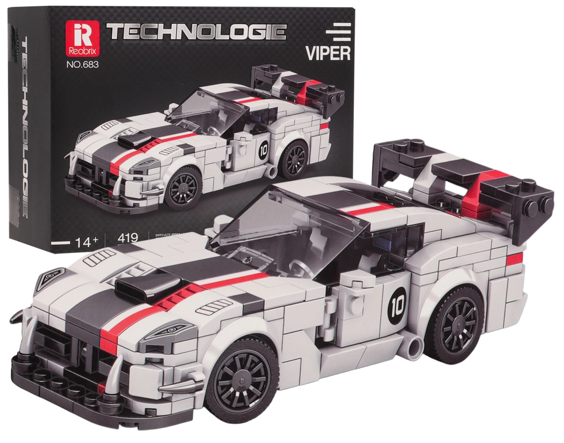 Този креативен конструктор представя детайлно изработен бял спортен автомобил, вдъхновен от дизайна на Viper. Сглобяването е с трудност 2/5, подходящо за напреднали начинаещи и ентусиасти по технически модели. Благодарение на ръчно отварящите се врати и възможността да украсите модела с включените стикери ще получите впечатляващ експонат.