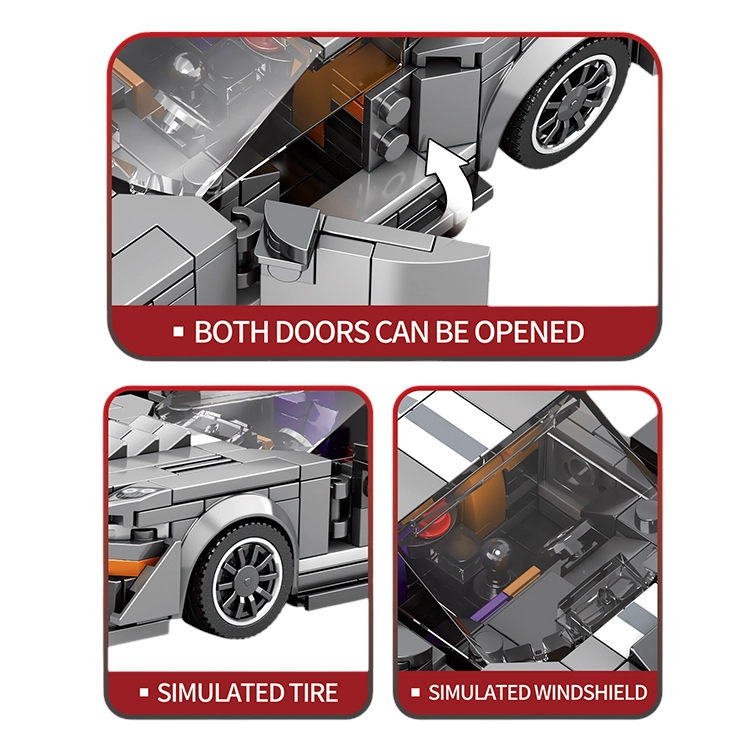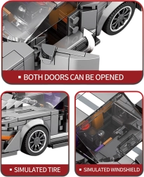 Моделът предлага ръчно отваряеми врати, вярно възпроизведени пропорции на истински спортен автомобил и възможност за персонализиране на външния вид със стикери. В опаковката ще откриете илюстриран наръчник, който прави сглобяването ясно и изпълнимо стъпка по стъпка.