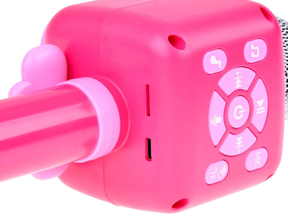 Лек и издръжлив микрофон с ясни бутони, удобен за детска ръка. Весел розов външен вид, който мотивира за пеене и танци.