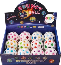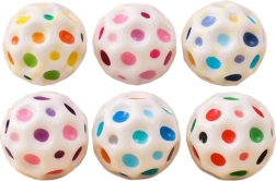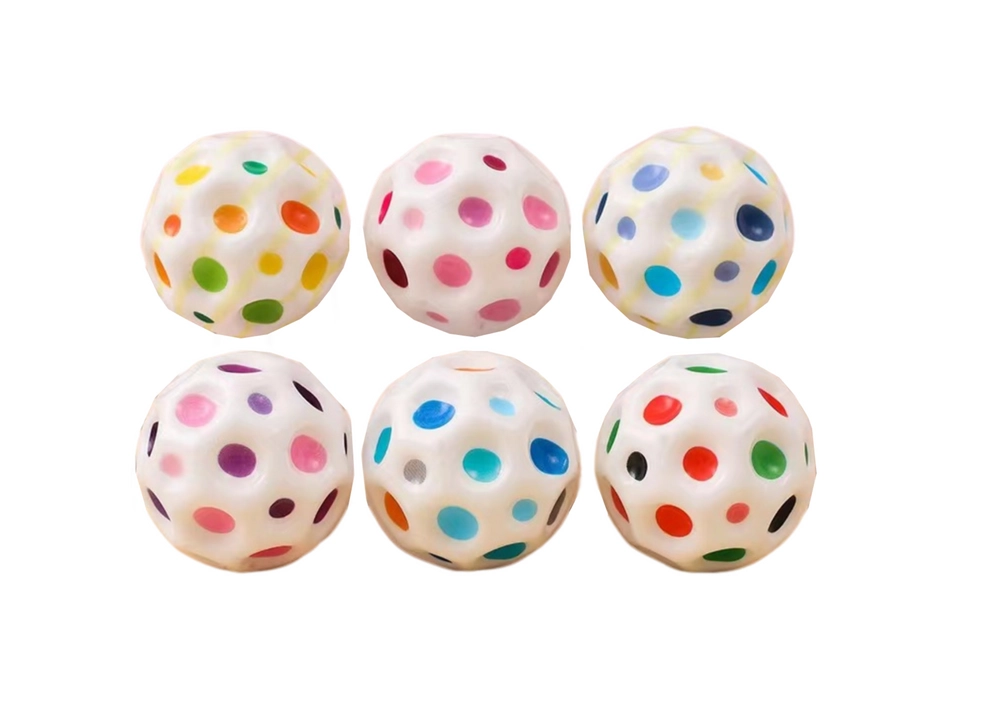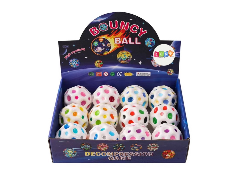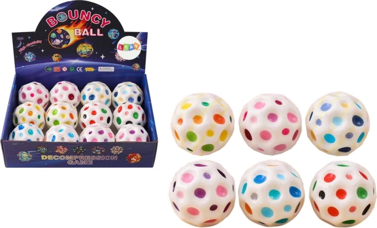 Забавна космическа топка в бял цвят с цветни вдлъбнатини осигурява бързи отскоци, възможност за стискане за сетивно успокояване и страхотно забавление за деца и възрастни. Благодарение на диаметър 7 см е идеална за дома и навън и подпомага фината моторика и координацията.