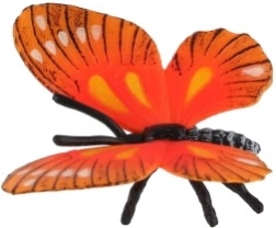 Този декоративен модел на пеперуда, вдъхновен от вида МОНАРХ, впечатлява с наситени оранжеви крила с черна и бяла шарка. Благодарение на реалистични детайли като жилки на крилете, пипала и форма на тялото изглежда много правдоподобно и е подходящ за детски стаи, творчество, витрини и като образователно средство.