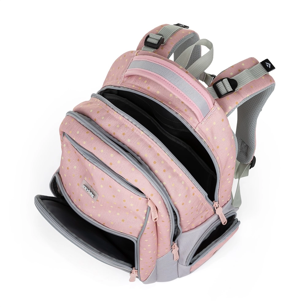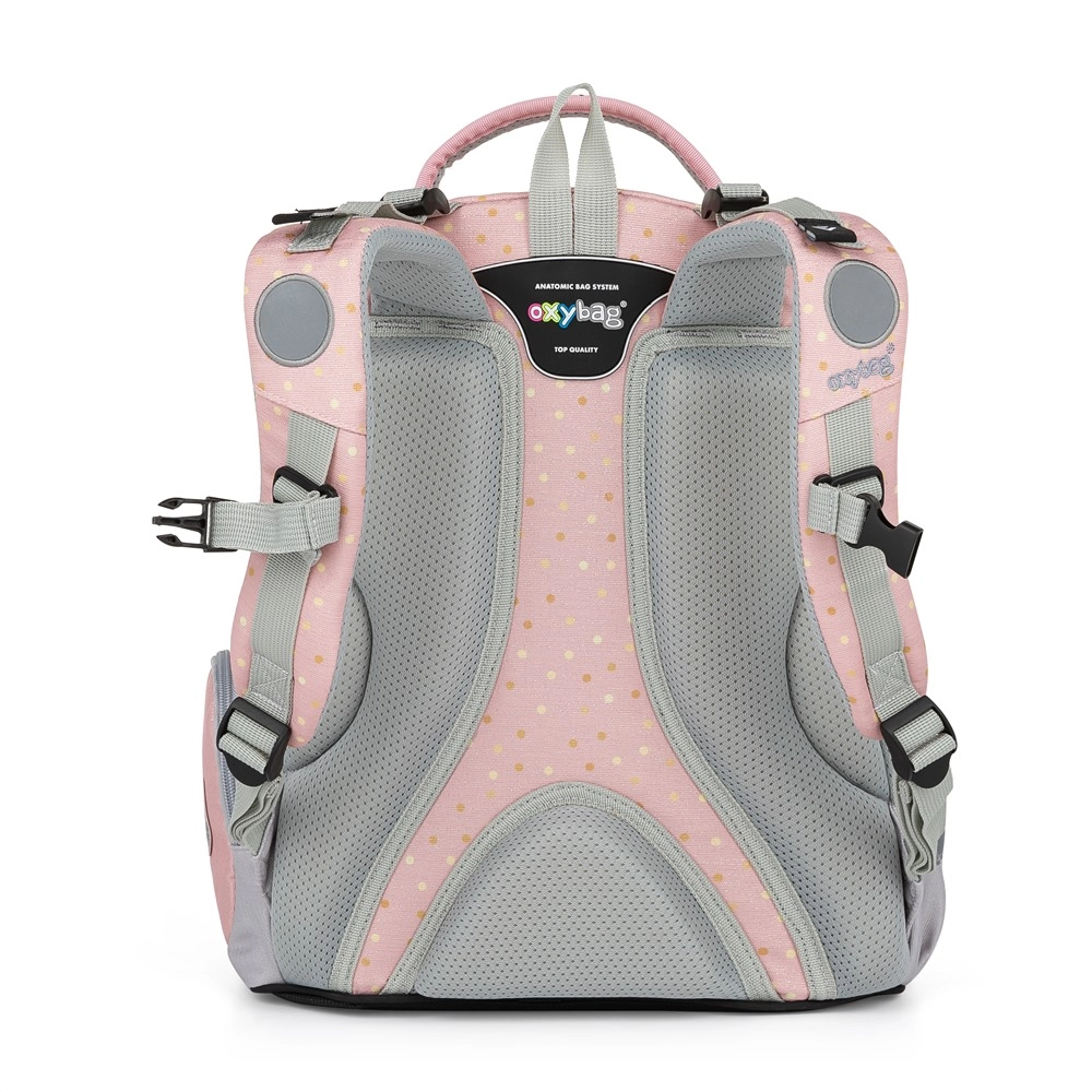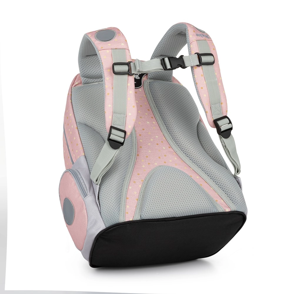 Анатомично оформеният, дишащ гръб и регулируемите раменни презрамки осигуряват комфортно носене и правилно разпределение на теглото през целия учебен ден.