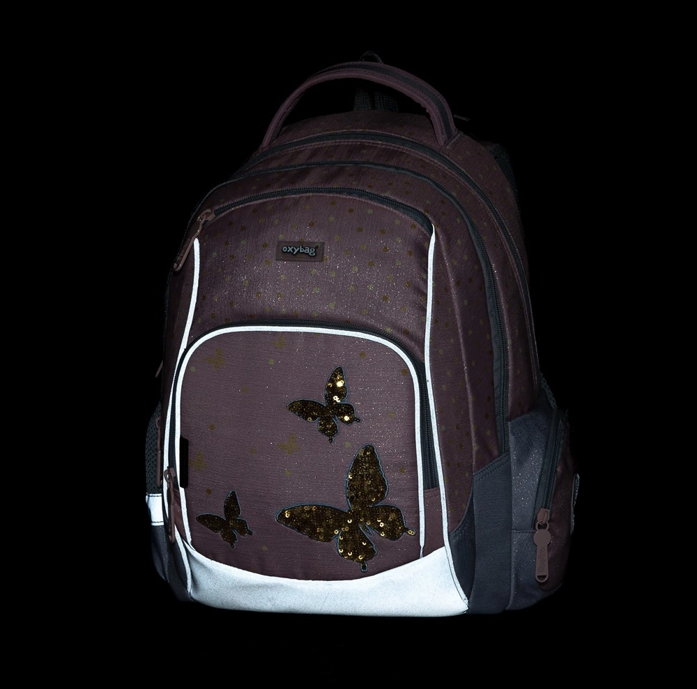 Стилната ученическа раница OXY GO Пеперуда е създадена за удобно всекидневно носене. Разполага с анатомично оформен, дишащ гръб и регулируеми раменни презрамки за правилно прилягане на гърба. Благодарение на здравото и водонепропускливо дъно съдържанието остава защитено, а раницата запазва чистия си вид.
