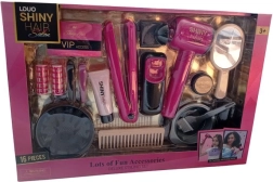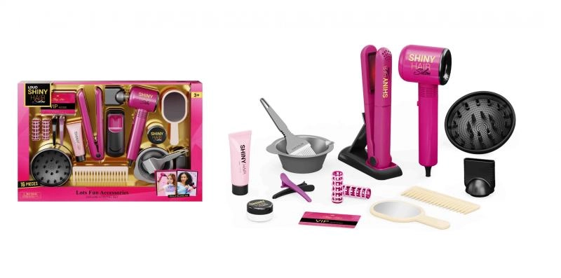Развийте креативността и въображението с този детски фризьорски комплект от 16 части. В него ще откриете сешоар на батерии, преса за коса, гребен, фиби и ролки, огледалце и аксесоари за „боядисване“ на коса – всичко за реалистична игра на салон за красота.
