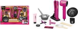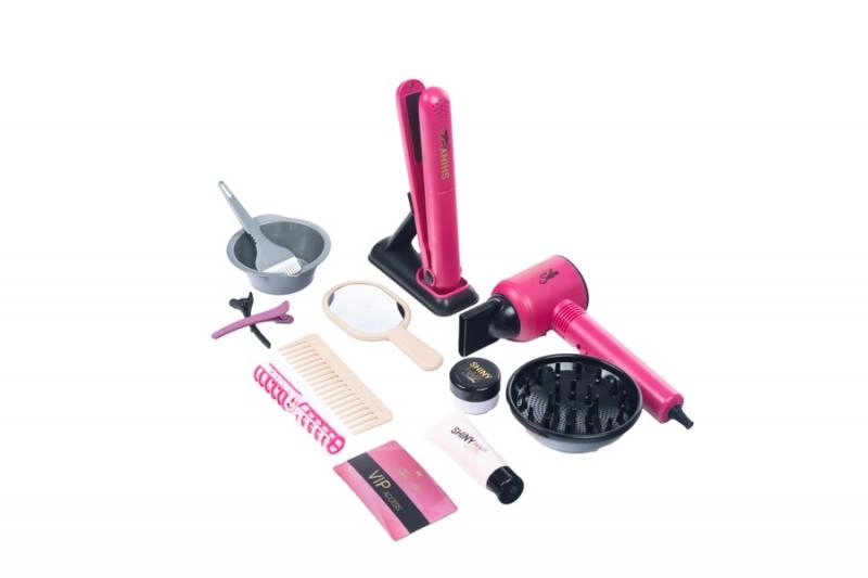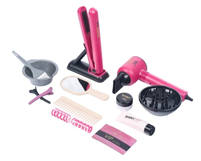 Този богат детски фризьорски сет дава на малките стилистки всичко необходимо за игра на истински салон. Благодарение на функционалния сешоар на батерии и целия набор от аксесоари, децата могат да имитират оформяне, сушене, изправяне и „боядисване“ на коса – безопасно и забавно.