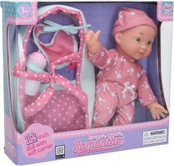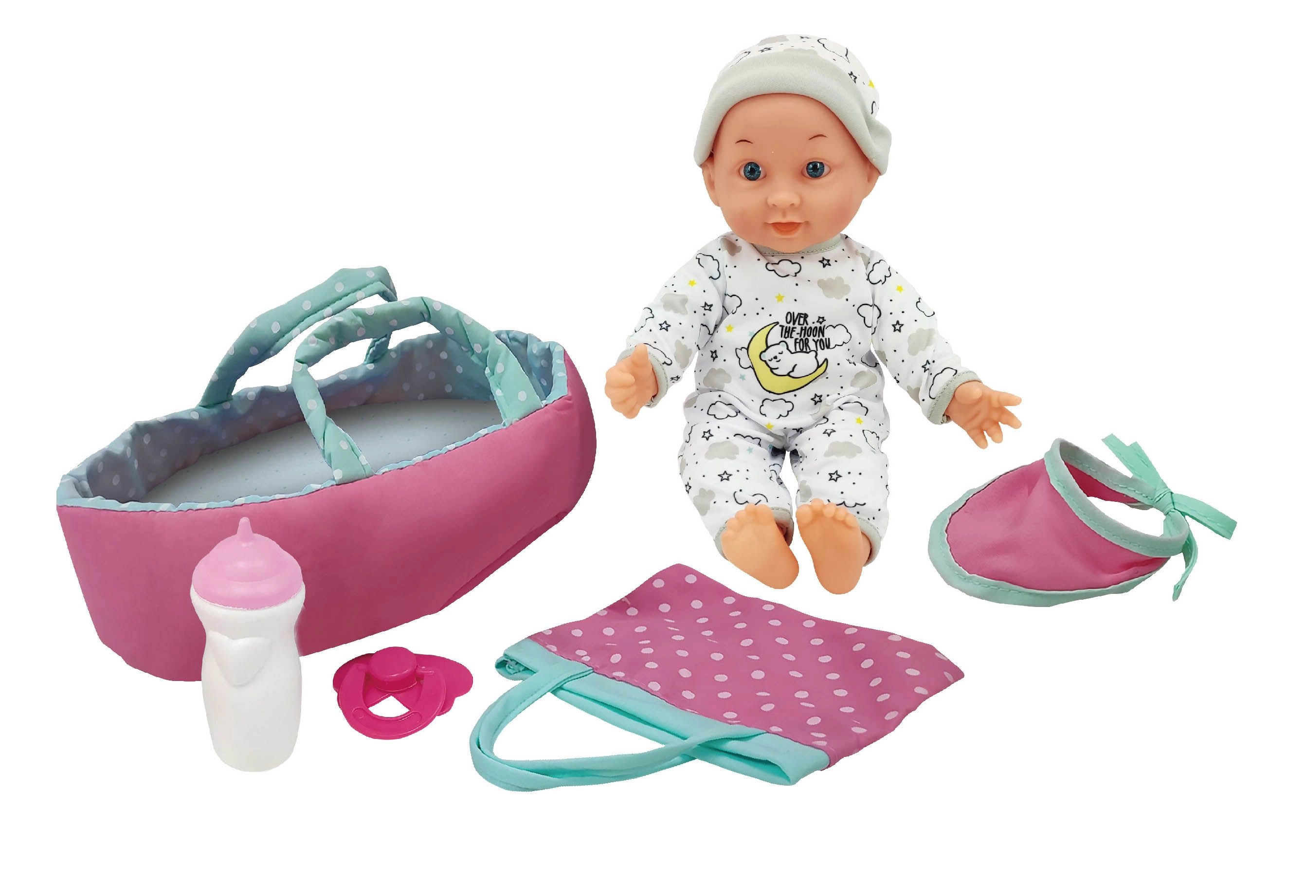 Меко бебе с преносима чанта е идеалната играчка за малки деца, които искат да се грижат за своите кукли. С размер 30 см е компактна и лесна за пренасяне.