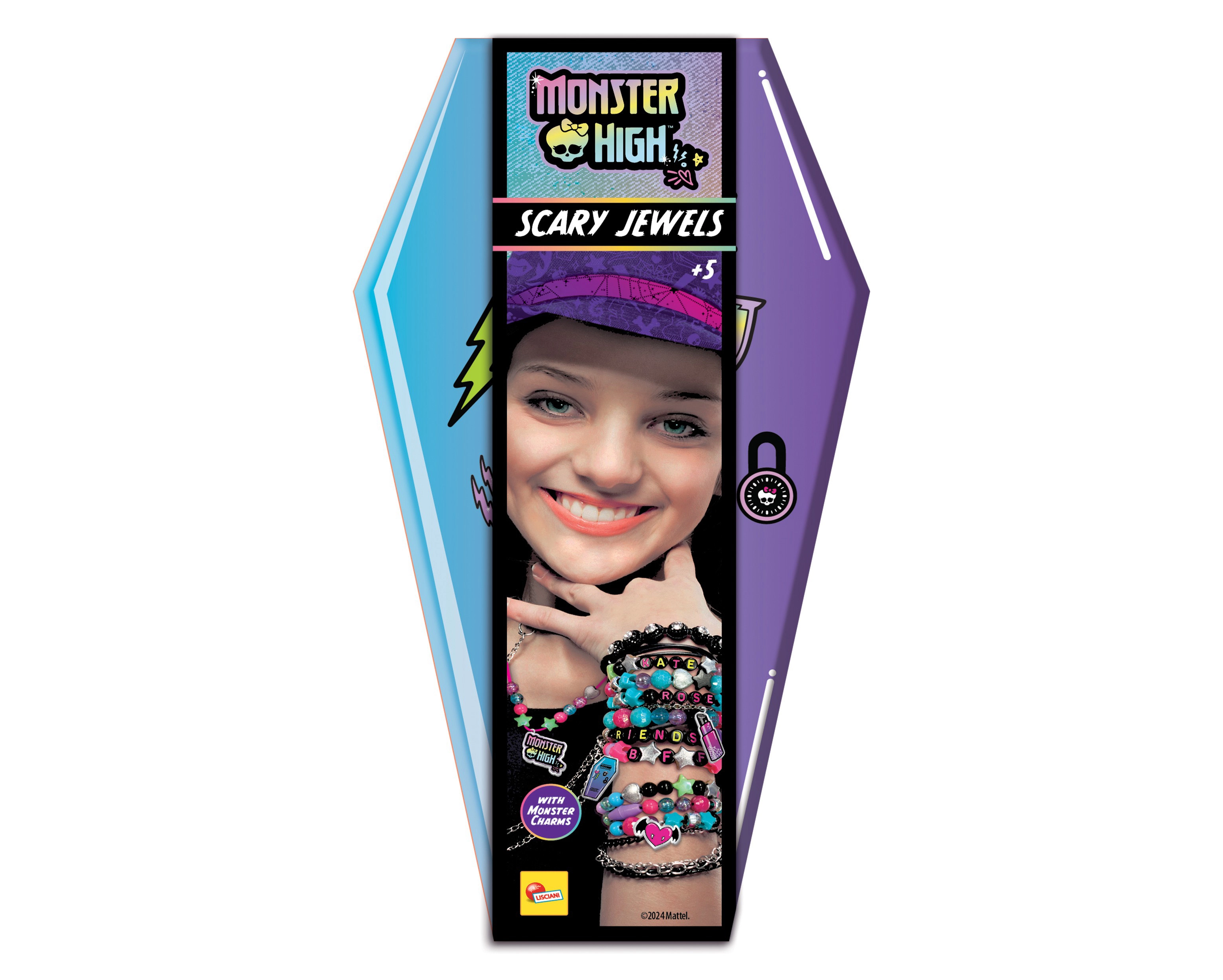 Развихрете въображението си с оригиналния комплект MONSTER HIGH и създайте свои собствени стилни страховити гривни. Благодарение на висулките с любими мотиви и богатия избор от компоненти всеки ваш аксесоар ще бъде уникален. Практичната кутийка във формата на ковчеже служи както за съхранение, така и като чудесен подарък.