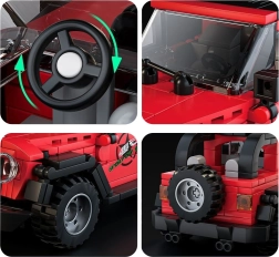 Сглобете свое собствено червено офроуд автомобилче от 414 части, изработени от здрав ABS пластмаса. Конструкторът за деца от 8 години предлага вярна изработка, стикери за прецизиране на детайлите и практична прозрачна витрина за изложение на готовия модел. Включен е илюстрован наръчник за лесно сглобяване.