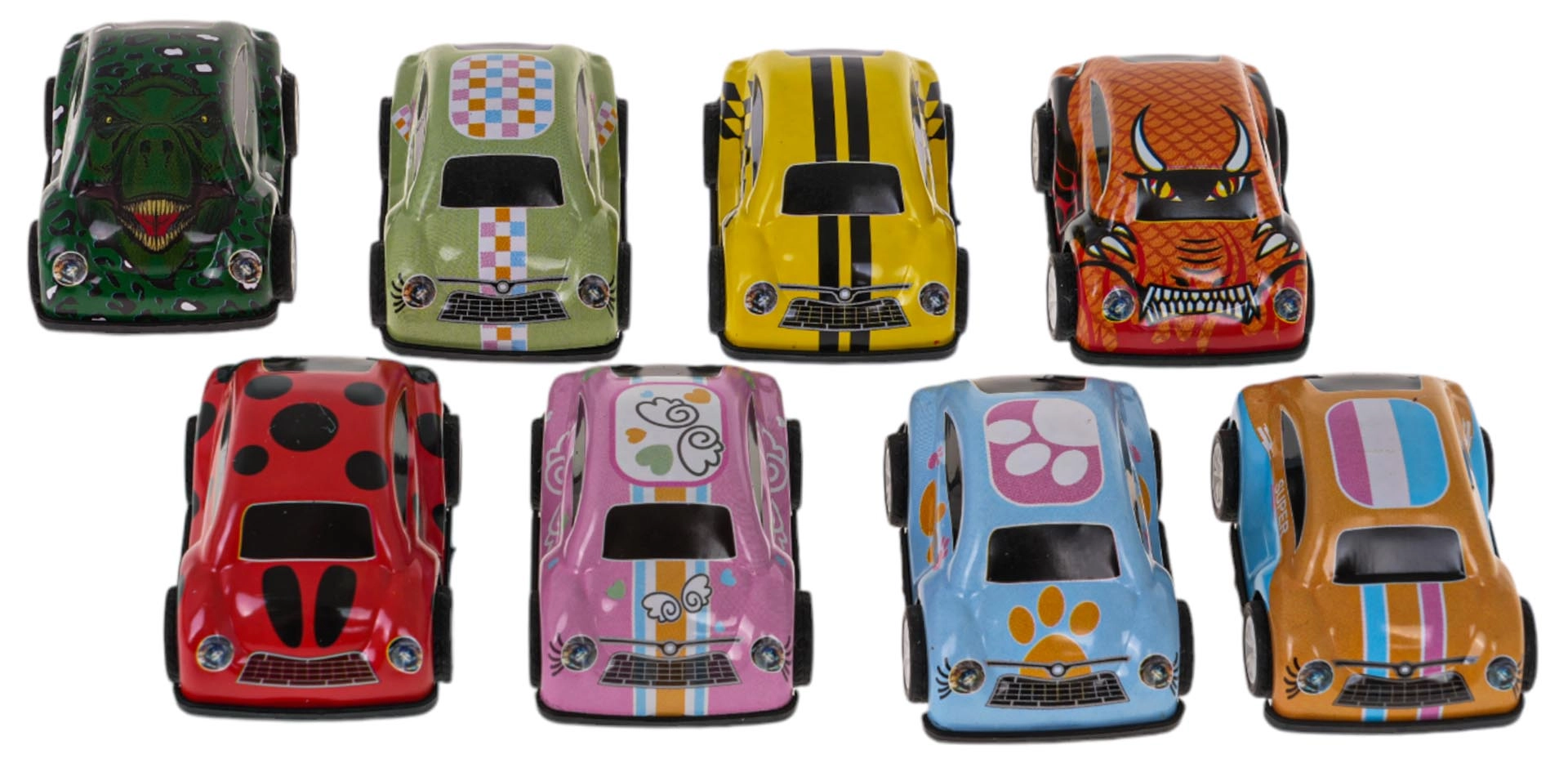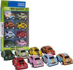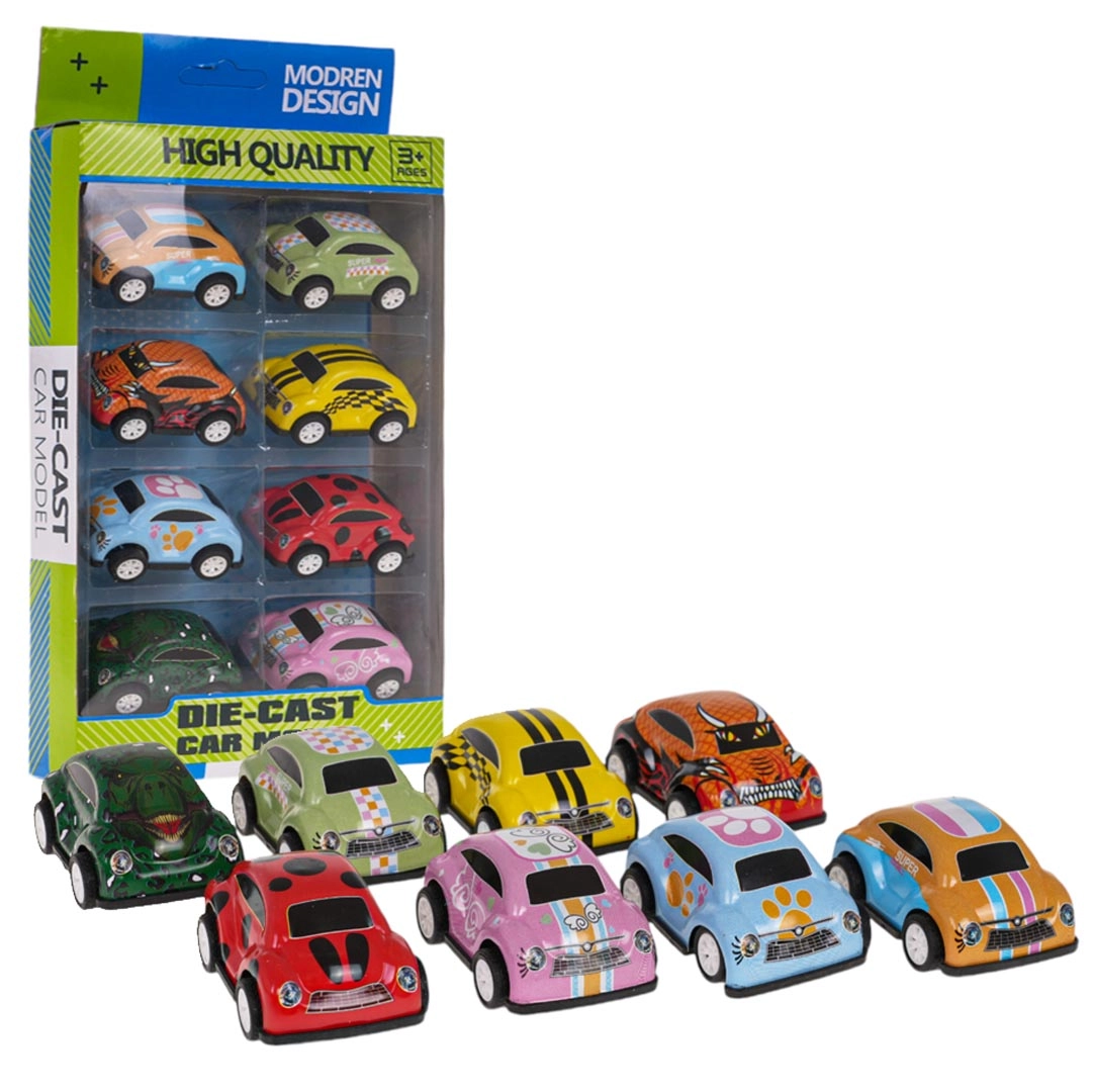- Многоцветен комплект от 8 колички за разнообразна игра и колекциониране