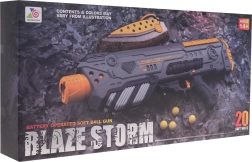 Забавна и безопасна екшън игра за по-големи деца: полуавтоматичен пистолет BLAZE STORM за пяна топчета с горен пълнител. Предлага бърза стрелба, качествена пластмасова изработка и 20 меки топчета в комплекта. Предназначен за възраст 14+, захранване с 6× AA (не са включени).