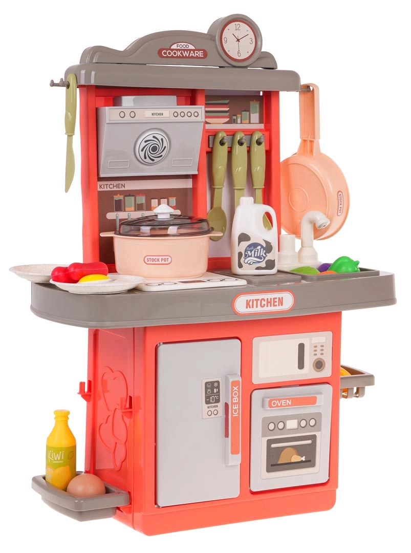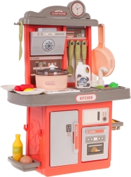 Тази стабилна детска кухничка в ярки цветове е изработена от качествена пластмаса и предлага всичко необходимо за игра на готвене. Интерактивният котлон осигурява звуци на пържене и варене и подсветка, има и отваряща се фурна и отварящ се хладилник. Отличен избор за развитие на креативността, фината моторика и социалните умения при съвместна игра.