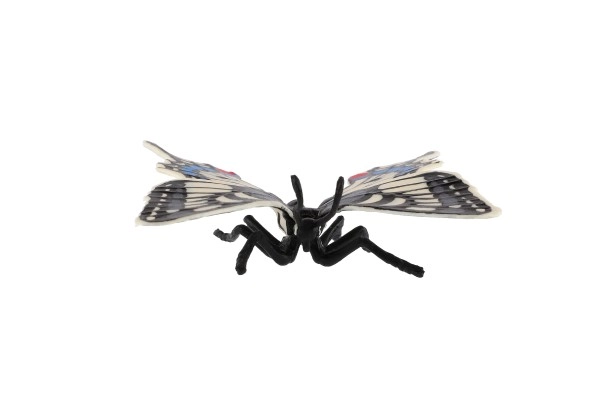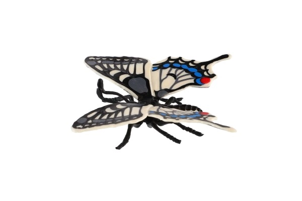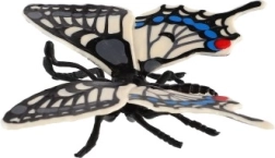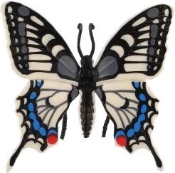 Тази декоративна пеперуда, вдъхновена от вида папилио (махаон) – Papilio machaon, се отличава с прецизна изработка на крилете с контрастни шарки в черно, бяло и синьо. Реалистичната визия създава естествена атмосфера в детска стая, кабинет или дневно помещение.