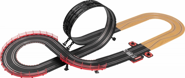 Кръгът с дължина 4,9 м комбинира лупинг, стеснение и надлез за максимално забавно каране. Благодарение на модулните елементи лесно изграждате различни варианти на трасето.