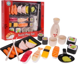 В комплекта ще намерите всичко необходимо за сервиране – от поднос и купички до клечки и разнообразни видове суши, сашими и аксесоари. Частите със велкро (на сух цип) позволяват реалистични сценарии „съедини и сервирай“, които децата обожават.