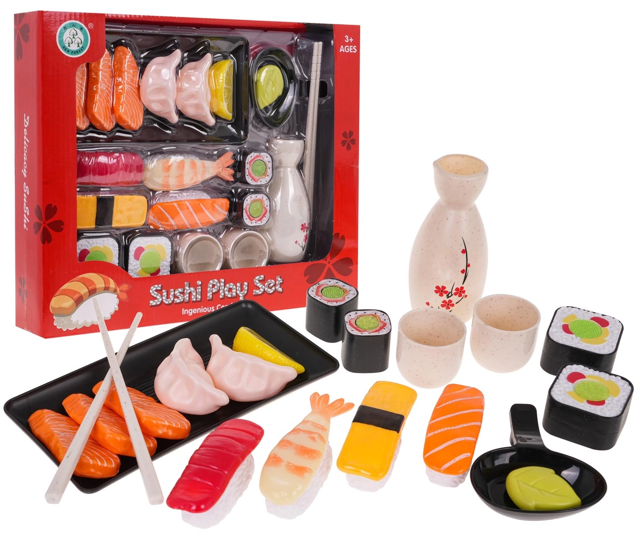 Този игрив суши сет носи на децата автентично изживяване от приготвяне и сервиране на суши. Благодарение на качествената изработка и живите цветове стимулира въображението, развива фината моторика и подпомага креативната игра самостоятелно и с приятели.