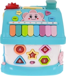 На покрива ще откриете подвижен телефон, цифрова клавиатура с тонове и названия на числата и пиано с 8 цветни клавиша, което може да сменя звуци, ритми, да пуска песнички и мелодии. Налични са светлинни ефекти, бутони с музика, изтегляща се дръжка за лесно пренасяне и забавни елементи като светещо колелце и комин със звук на птичка.