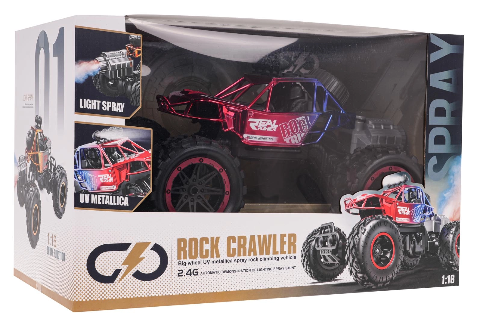 Мощен RC Rock Crawler в мащаб 1:16 с големи гумени гуми, 2,4 GHz управление и ефектна функция дим с LED подсветка. Издръжлива антиколизионна конструкция, висок просвет и плавно управление гарантират забавление на всякаква настилка.