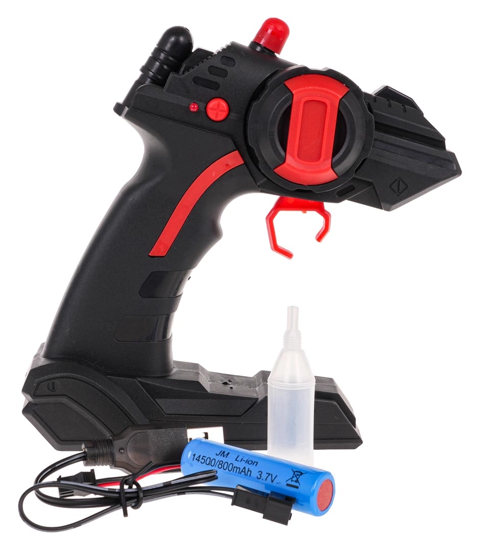 - Автомобил, контролер 2,4 GHz, батерия 3,7 V 800 mAh, USB кабел за зареждане, пипета за вода