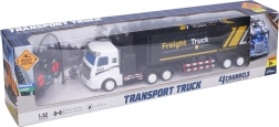 Забавен радиоуправляем камион с дължина 41 см в елегантен черен цвят. Предлага честота 27 MHz, светлинни ефекти и батериен пакет 3,7 V с USB кабел в комплекта; 2× AA за контролера не са включени.