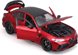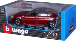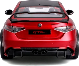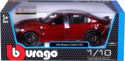 Открийте висококачествения метален модел ALFA ROMEO GIULIA GTA в атрактивен червен металик. Серията BBURAGO 1:18 Plus предлага реалистични пропорции, остри детайли по каросерията и спортна атмосфера на автомобил, прочул се с лекота, мощност и прецизно управление. Моделът изпъква с аеродинамични линии, жълти спирачни апарати и изразителен заден спойлер.