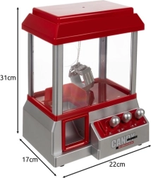 Здрав нокът на верижка надеждно хваща дребни сладки или малки играчки. Наградата пада в червено осветена кутия – ефект, който децата обожават.
