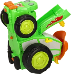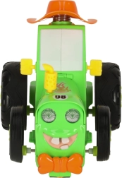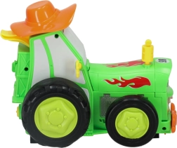 Тракторът възпроизвежда весела музика и се управлява много лесно с контролера.