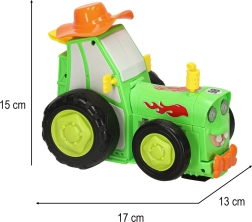 Този скачащ трактор е уникална играчка, която носи забавлението на ново ниво. Той ще зарадва децата със способността си да скача вместо класическо движение, като същевременно възпроизвежда весела музика за още по-голяма радост. Оборудван е с лесен за управление контролер, с който може да се справи всяко дете, а благодарение на захранването с батерия работата му е лесна и ненатоварваща.