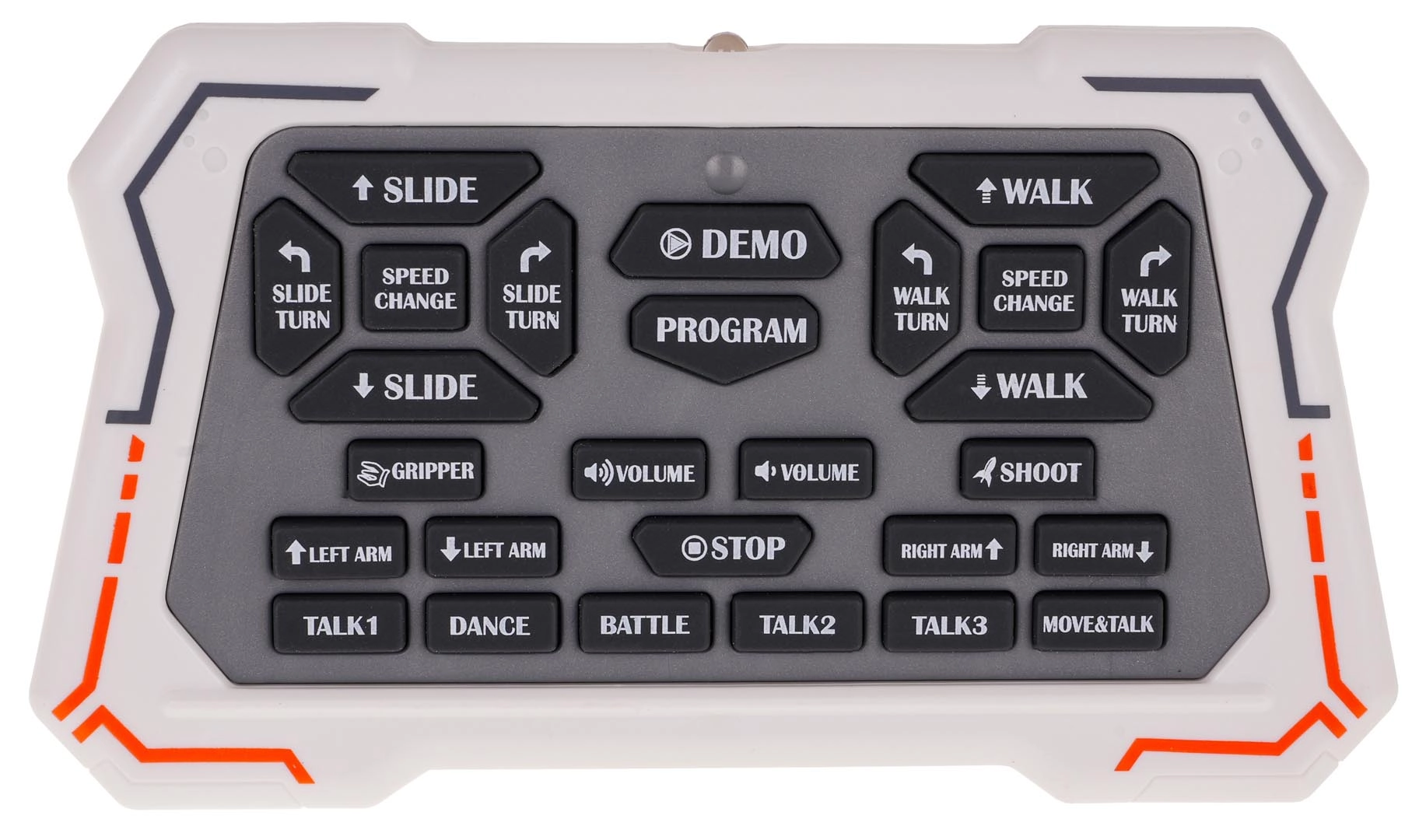 Този иновативен робот е създаден, за да впечатлява със своите разнообразни функции. Управляван дистанционно чрез RC контролер, роботът танцува, изпълнява бойни последователности, говори на роботизиран език и има програмируема последователност от движения. Благодарение на LED осветлението на ръцете и различните звукови ефекти по време на движение, е идеален за креативна игра.
