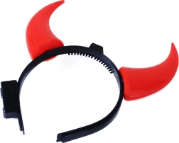 Страхотна светеща диадема с дяволски рога, която при натискане на бутона мига. Съдържа 3× батерии LR44, така че можете да я използвате веднага. Идеална за карнавал, коледно тържество и тематични партита. Подходяща от 3 години.