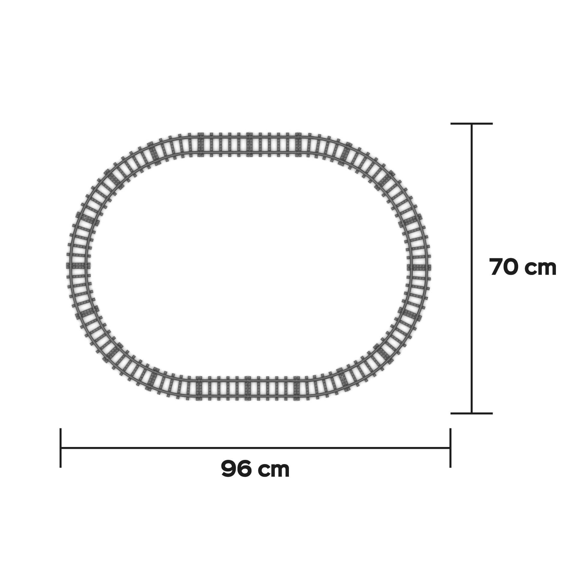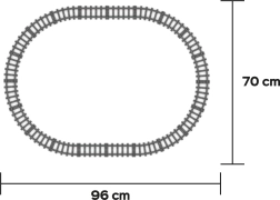 - Трасе 96 × 70 cm – 16 извити + 4 прави релси