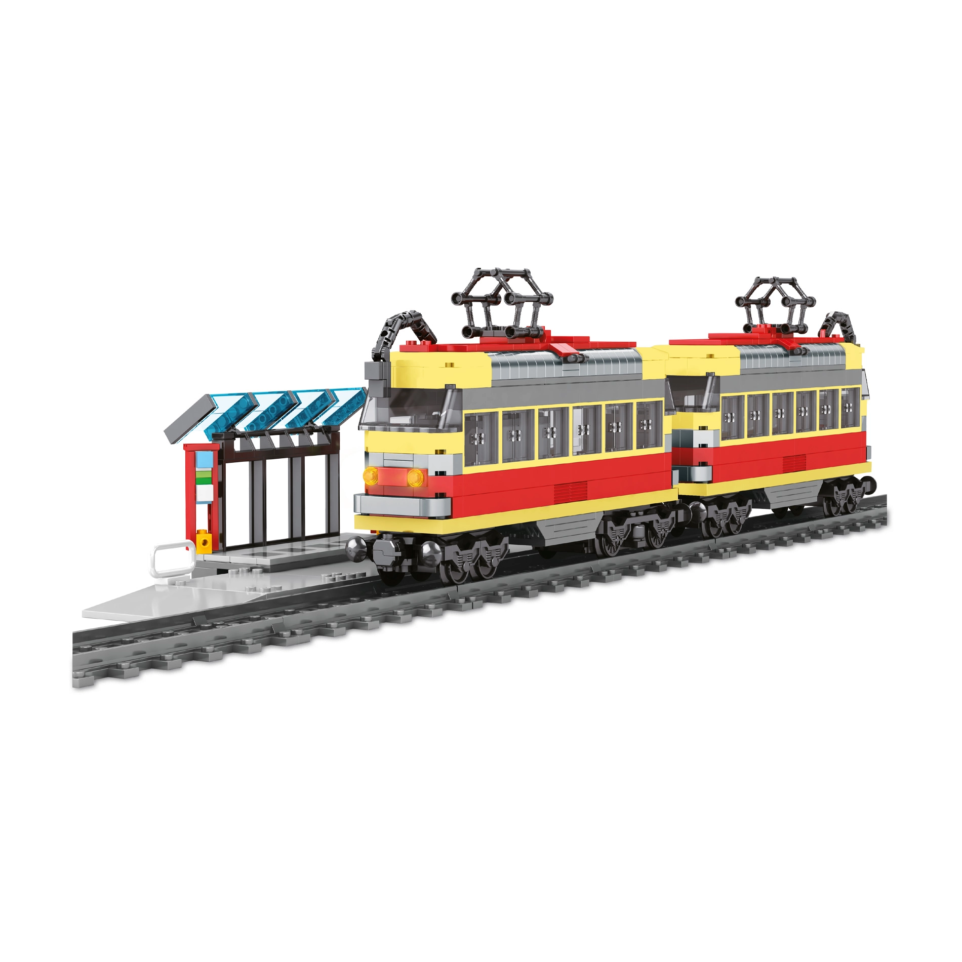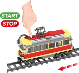 Този детайлно изработен конструктор ще зарадва малки и големи строители и всички почитатели на градския транспорт. Двата сдвоени трамвайни вагона, реалистичните релси и стилната спирка създават привлекателен комплект за креативно строене и динамична игра. Благодарение на задвижването с батерии моделът след сглобяване наистина се движи по трасето.