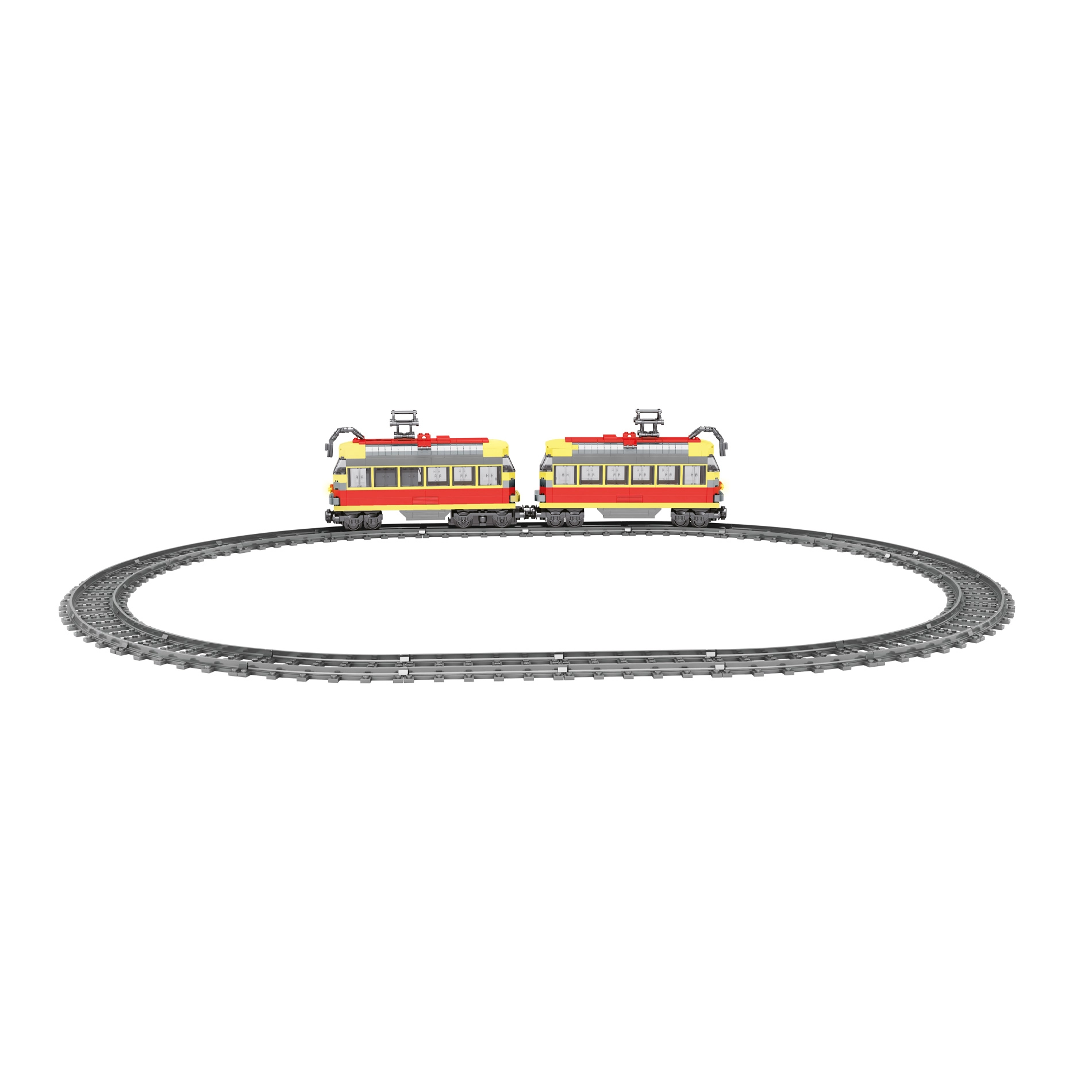 Постройте собствена градска линия с конструктора трамвай с релси и спирка. Комплектът с 724 части предлага двувагонен трамвай, движение на батерии и съвместимост с подобни конструктори. След сглобяване получавате трасе с размери 96 × 70 cm от 16 извити и 4 прави релси. Трамвайът тръгва след поставяне на 6× AAA (не са включени) и за безопасност автоматично спира след 5 минути.