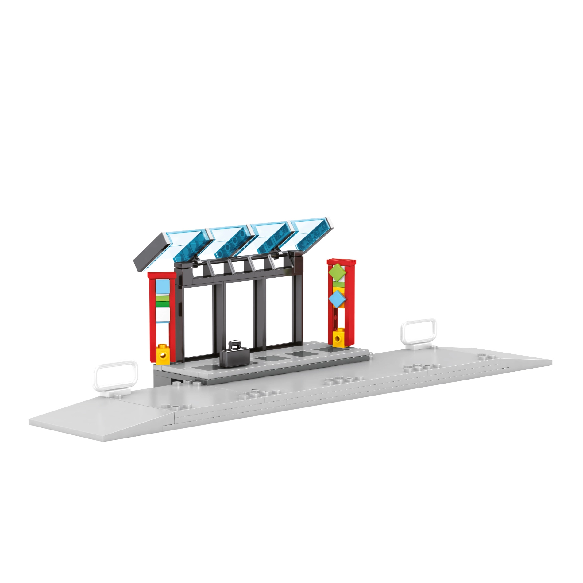 В комплекта има и трамвайна спирка, която допълва градската сцена и разширява възможностите за игра и строене.
