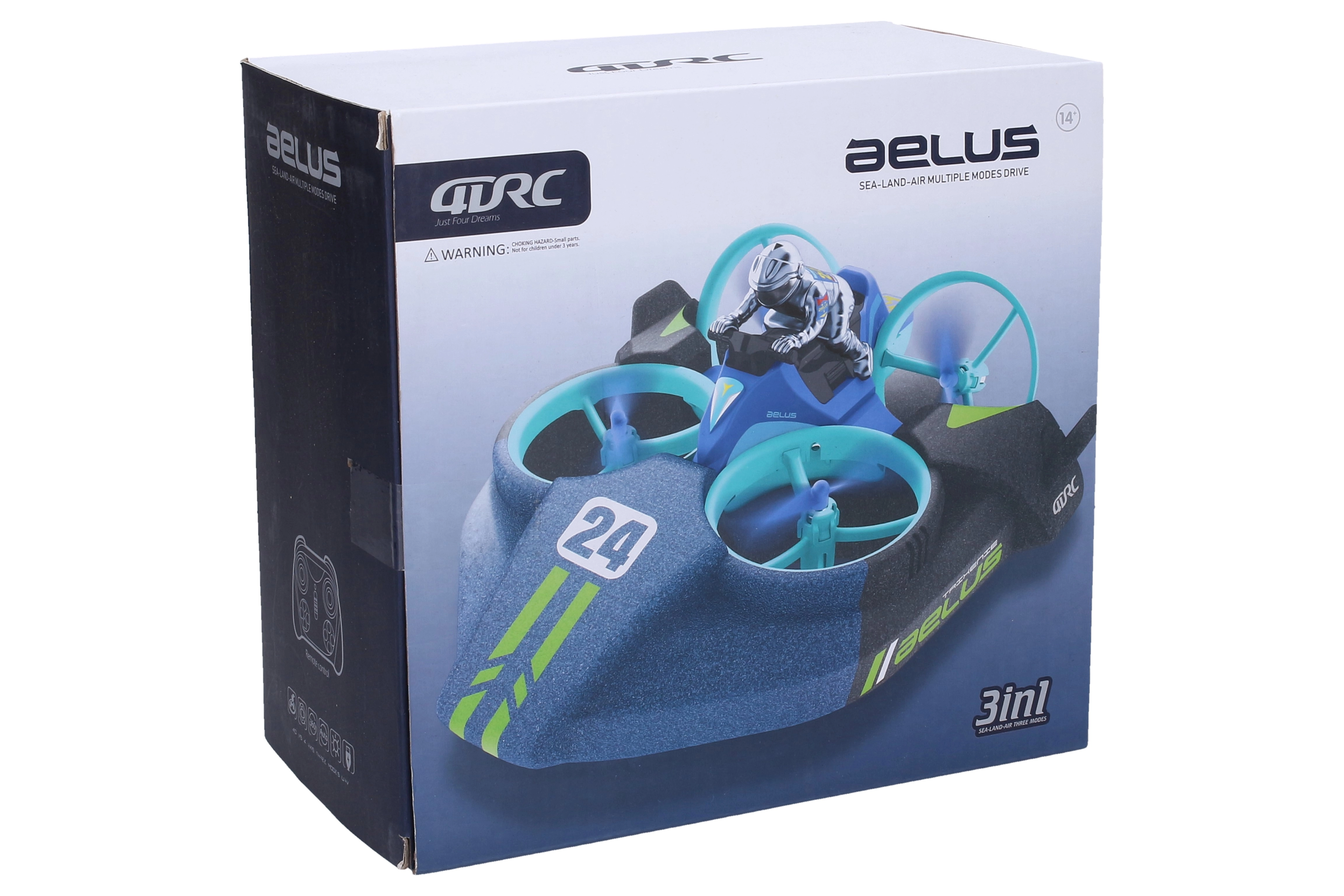 Дронът AELUS 3-в-1 е идеален избор за деца и начинаещи, които искат да изпробват повече начини за забавление с едно устройство. Той може да лети, да се движи по твърда повърхност и да се плъзга по вода, така че ще се забавлявате навсякъде. Управлението е интуитивно, а превключвателят ON/OFF на контролера позволява бърз старт.
