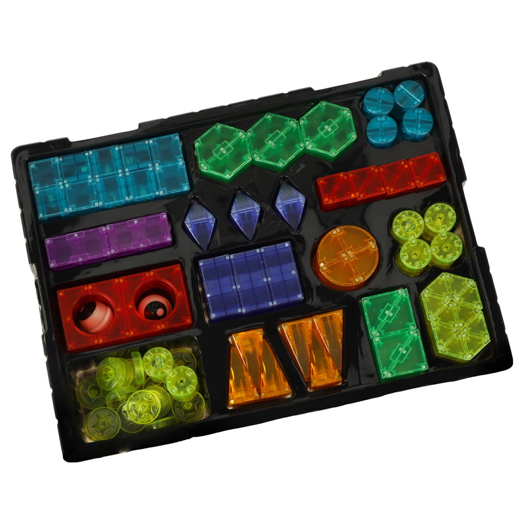 Конструкторът предлага десетки възможности за строене и откривателство. Разнообразните форми и цветове развиват въображението и подпомагат логическото мислене. Магнитното свързване е интуитивно и забавно, така че децата лесно създават стабилни конструкции, които буквално засияват благодарение на светещите елементи.