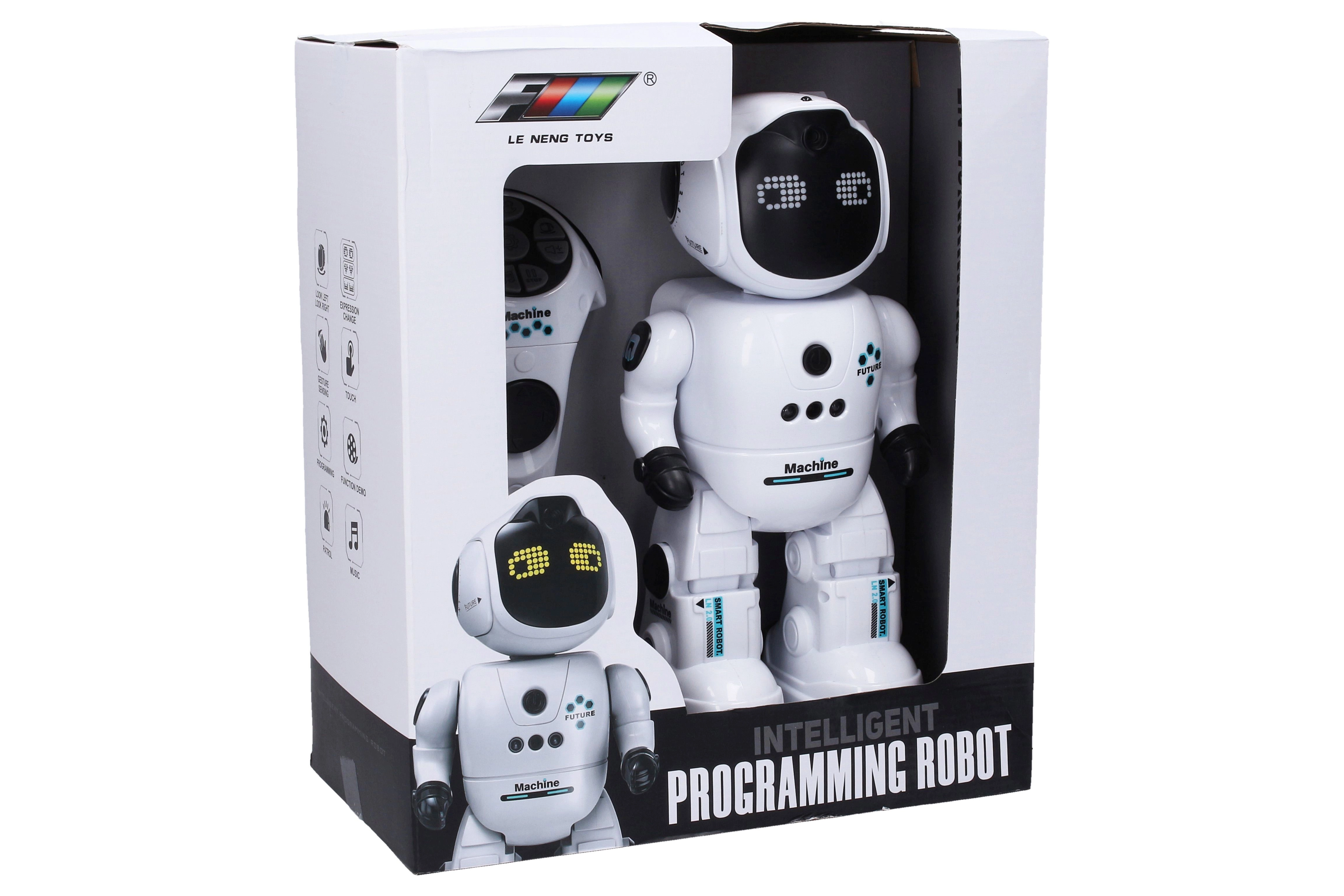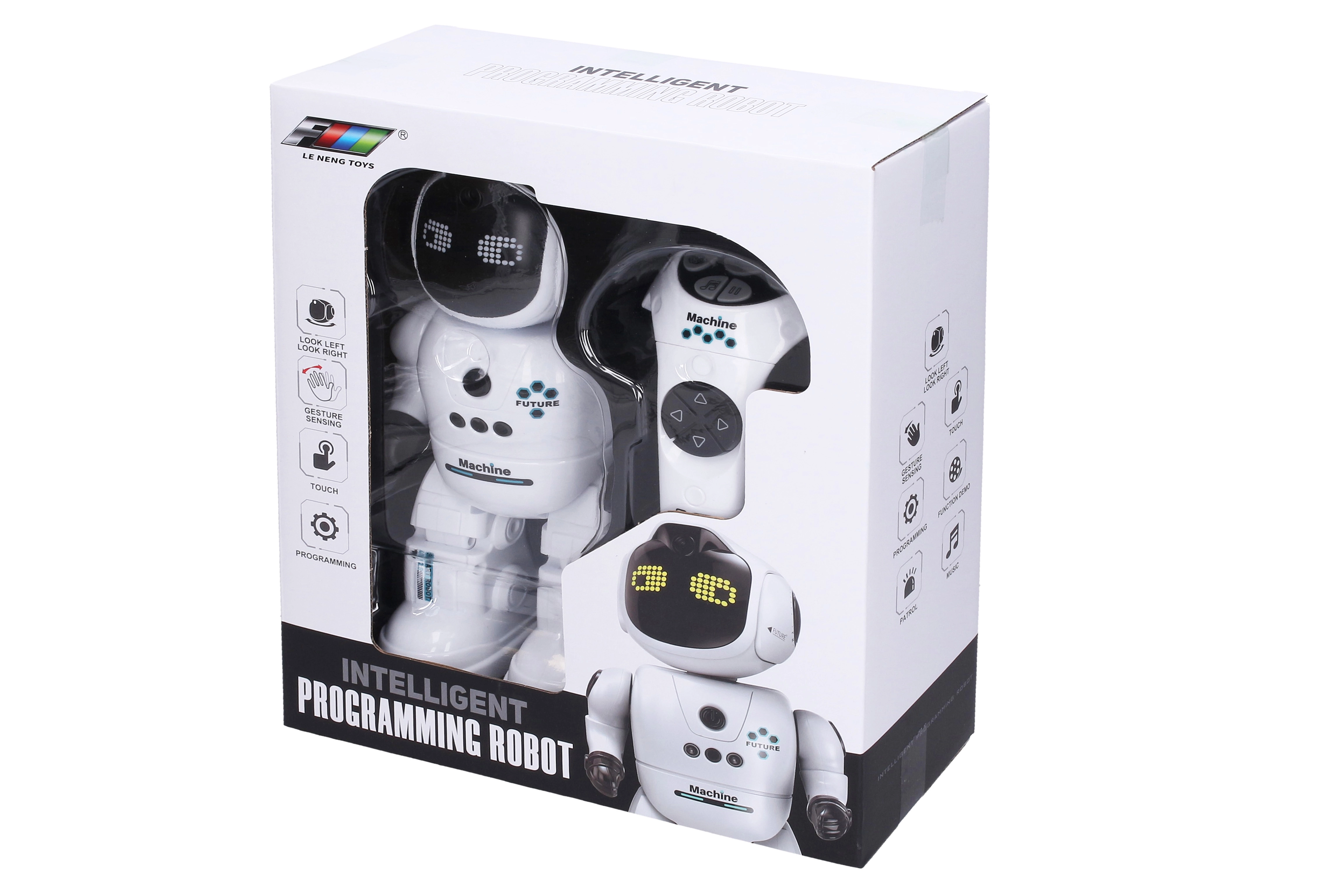Открийте умния спътник за деца и игриви възрастни. Този RC робот комбинира допирно управление, управление с движение на ръката и класическо дистанционно. Благодарение на осветеното лице с променящи се изражения, подвижната глава и богатите ефекти е отличен избор както за забавление, така и за развитие на моториката и креативността.