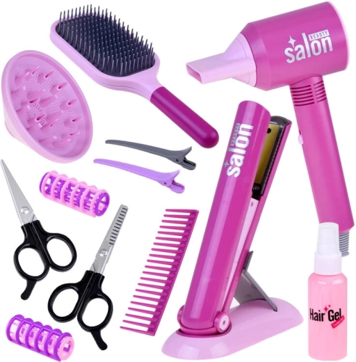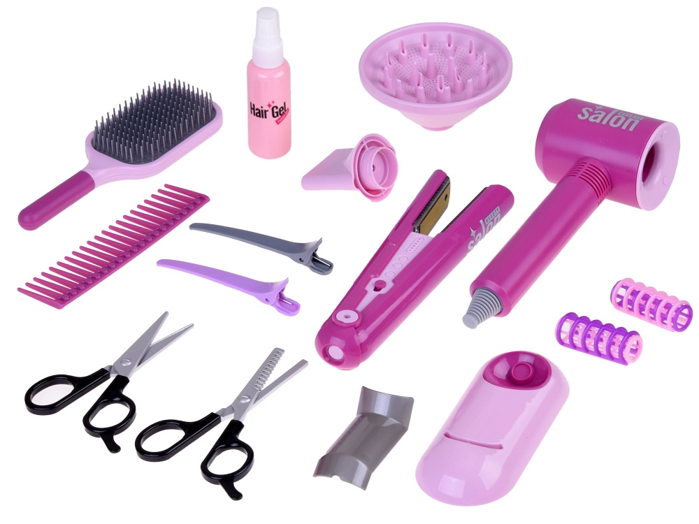 Сешоар, преса, четки, гребени, щипки, ролки и ножици – всичко, което малкият фризьор има нужда, за да създава прически у дома и в движение.